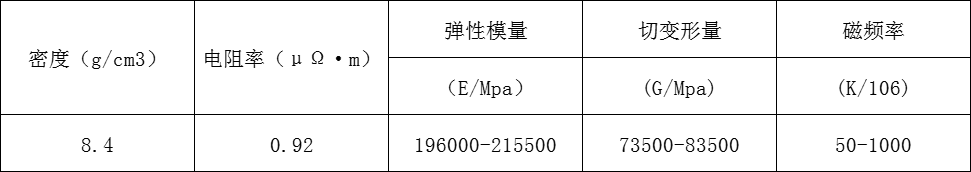 钴铬钼合金,综合性能优异,具有高的弹性模量,高的弹性极限,极低的弹性后效(0.02%)。经冷加工其抗拉强度Rm高达2950Mpa。同时还具有高的疲劳寿命,高硬度,高耐磨,缺口敏感性低,工作温度高达400~500℃。主要用于制作轴类,张力丝,特种轴承,对弹性敏感性要求高的弹性元件。